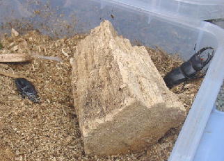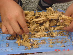 | KOMAちゃん先生による産卵木割り教室 | 出てきましたよ〜 オオクワ幼虫 |