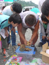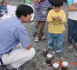 | いよいよカブクワプレゼントコーナーです! | 人気のあるクワガタはジャンケンで決めます。 みんな真剣です! |