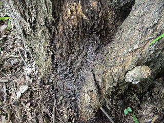 根元に樹液が出ていて、おおとろ君が見事ミヤマクワガタをゲット!