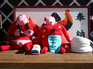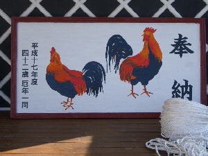 42才厄年提供の絵馬(毎年干支が描かれます) 33才厄年提供の夫婦猿(今年は大事な所を隠しています)