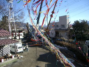 飾りつけも終わり、いよいよもうすぐです。 夫婦猿もしっかりくくりつけられました。