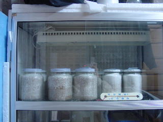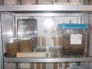 中段 ノコギリクワガタルーム 空気循環のためガラス扉を少々開けてある。 温度設定は23℃ |