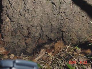 1本1本ていねいに樹液を見て回ったが、もう1本根元に樹液が出ているクヌギしか