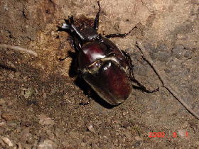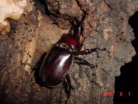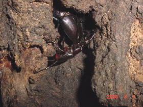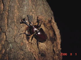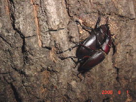 | 80mmはあろうかという大物である。ひとりで悠々と樹液を吸っていた。 | |