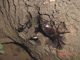 | 根元にはカブト♂、コクワガタ♂、ゴキ! | なかなか大物のカブト |