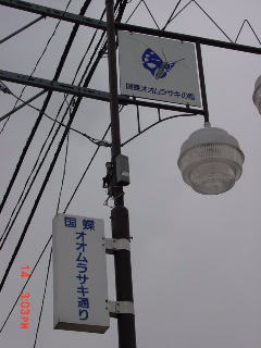 | 駅のすぐそばのオオムラサキのモニュメント。長坂町ではかなり力を入れている。 町おこしの一環みたいなものかな。 | 駅前通りもこんな名前になってる! | |