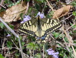 | 遠くに見えたとき一瞬、「ギフチョウか!」と思ったが、 そう甘くない。 でも、春の妖精キアゲハに会えた。 |