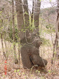 えっ? やっと出てきたじゃないかって? ま、一応ポイント開拓も多少はね。(^^ゞ しかし、数が多すぎて多すぎて・・・ 台場クヌギの数だけ見てたらオオクワ数百匹採れそうなくらいだ。 ところがこれだけあってもなかなかね〜 上の真ん中は伐採されて間もないようだ。 下の左はヤマザクラとくっついちゃってる。 みさかいのない奴らよのう。 |