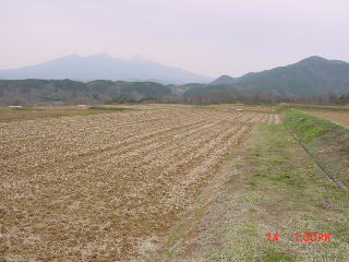 田んぼに水が入るのももうすぐだ。 ここでも八ヶ岳が見える。 明野村