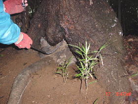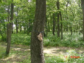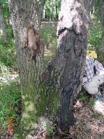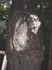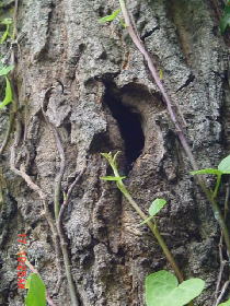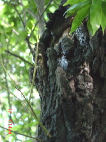 根元にけっこう樹液が出ているものだ。 ふと見上げると頭上1mぐらいの所にいい洞がある。