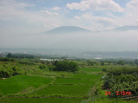 見れて良かったね! 棚田の向こうに南アルプスを望む