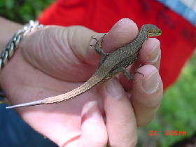 いっちゃん、カナヘビ捕まえる。 こいつを捕まえるとは素早い・・・ さすがだ・・・ (尻尾が再生してる)