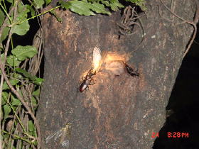 さすがヤングパンチ君! あっという間に樹液採集だ。 道具は彼のゴッドハンドだけ。