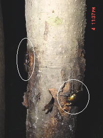 二人で樹液チェック、水銀灯チェックをしたがカブト♀の★が水銀灯下で発見されたのみ。