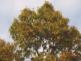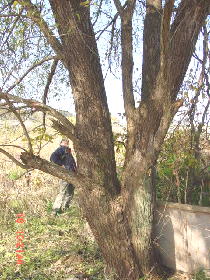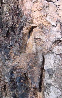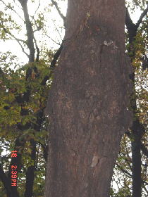 巨木を見上げるPさん。 なんと、樹液がにじみ出ていた。