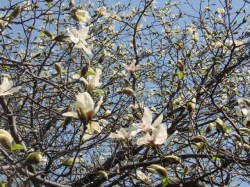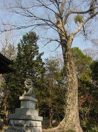 境内にはケヤキの巨木が多い。 コブシが春の陽をいっぱいに浴びていた。