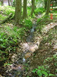 なんとなくよさそうな雰囲気のクヌギがある。 と思ったらチョロチョロ小川がある。 う〜ん、やはり近くに水は重要だ。
