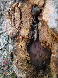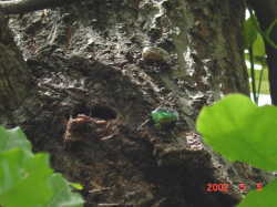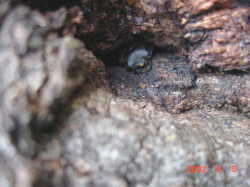 久々に巨大台場クヌギが並ぶ林にたどり着いた。 良さそうな洞もある。 この洞にはコクワ♂が入っていた。