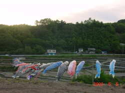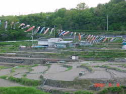 たくさんのこいのぼりが里山の空を泳いでいた。
