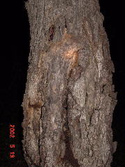 このクヌギは樹液がほんの少しにじんでいる程度。