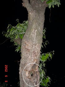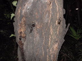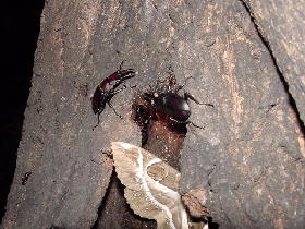 タケちゃん、Danさんの話によると、昨年まではこの木たった1本で、オオ、ヒラタ、ミヤマ、ノコ、コ、スジ、ネブトの7種類が採れたそうだ。