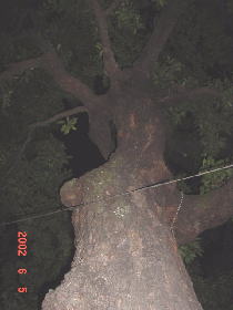 クヌギの巨木だが、人が入りやすい所にあり荒らされている。