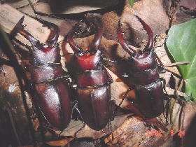 カブト♀、ノコ♂、コクワ、ゴキブリ カブトペアとコクワ♂