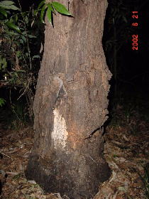 昨年ヒラタが取れたクヌギの樹皮めくれは、アリの巣で覆われてしまっている。
