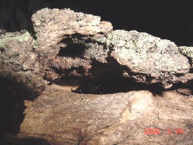 上部の洞に大きいクワガタの♀がはさまっていたのでドキッとしたがノコだった。