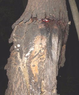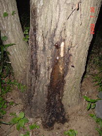 なんと、樹液が復活していた。(^。^) しかし、今までカブトを見たことがなかったこのクヌギにもとうとう現れていた。