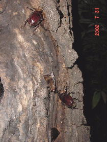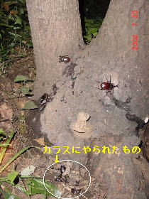 ヒラタが来ると確信していたこのクヌギも結局カブトだらけになっていた。