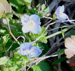 あぜ道にはオオイヌノフグリが咲き乱れている。
