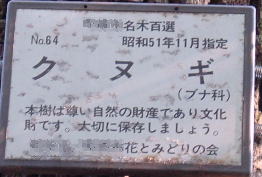 この付近にしては大木のクヌギ。 この地域の名木に指定されている。