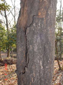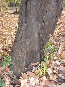 根元から背丈ほどの高さまで、めくれやすき間など大型のヒラタが来てもおかしくないすばらしいクヌギだ。