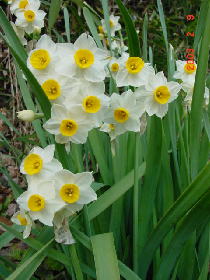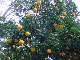 ミカンの木にスイセンの花。 付近の民家は古くからの農家が多いようだ。