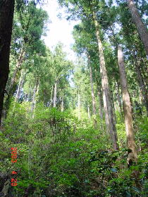山全体としてはスギの植林が多いが、このようなちょっとした雑木林もある。
