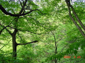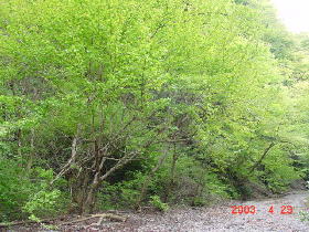 下りてきた所は周囲を広葉樹に囲まれた谷になっている。