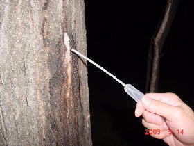 コナラは樹液が出ていたが、クヌギはまだカラカラだった。