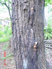 コナラの樹液が勢いよく出ているが、夏の間も出つづけるだろうか。 スズメバチも結構飛んでいた。
