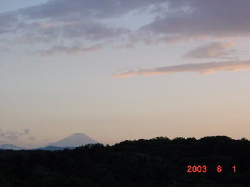 夕焼け空の向こうに富士山がくっきりと見えた。
