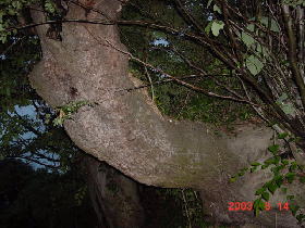 巨大な台場クヌギが2本ある。 2本とも樹液は出ているがコクワだけ。 こんな巨大な木なのに・・・