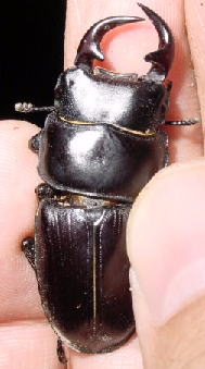 サイズは小さそうだが、コクワより色が黒くて横幅が広いのでオオクワだとわかる。