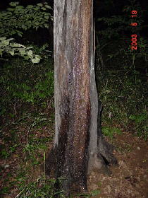 このコナラのほうがさらにすごい樹液なのだが、コクワが数匹いただけ。