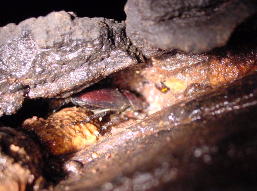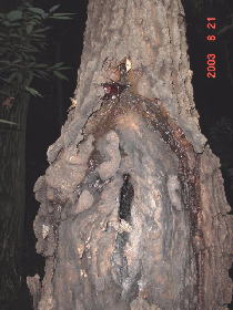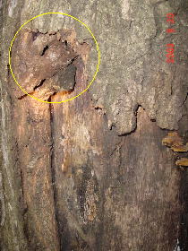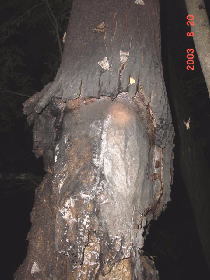 8月4日に49mmヒラタが隠れていた樹皮めくれがはがされていた。 (-_-;)