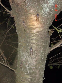 サクラの木にはアブラゼミがベタベタ張り付いている