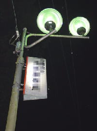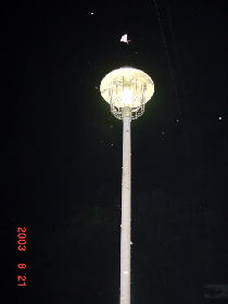 このような明るい外灯が2つある。 周りは真っ暗なのでかなり目立つらしく虫の数が多い。