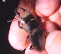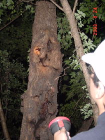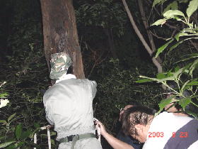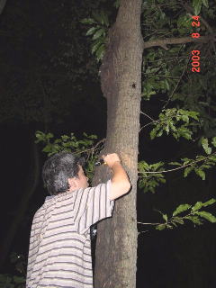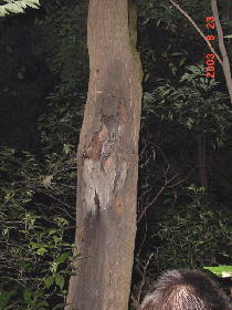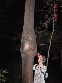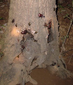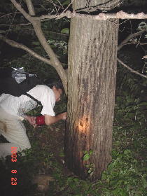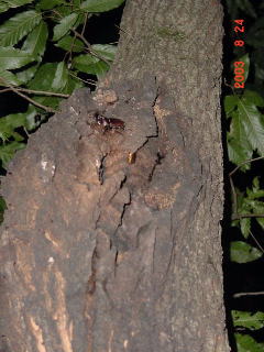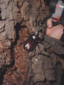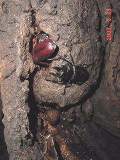相変わらずカブトだらけのクヌギ。 tontonさんが登って樹皮めくれからヒラタの前胸板を発見。50mmクラスのようだ。