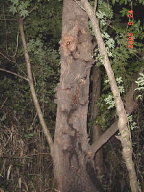 このクヌギのはるか上の樹皮めくれに55mmクラスのヒラタとノコ大歯型が見えた。 しかしタケコプターかはしご車でないと採集不可能。