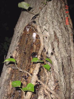 樹液が出ていないようでも、こうしてコクワが住んでいるところを見ると、