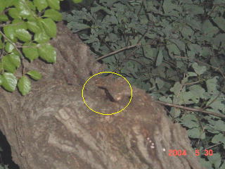 それでもノコを3ペア見ることができた。 右の写真は頭上約5mの大歯型だ。 ケリを何発か見舞ったが落ちてこなかった。